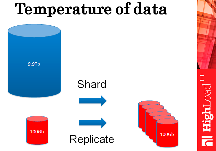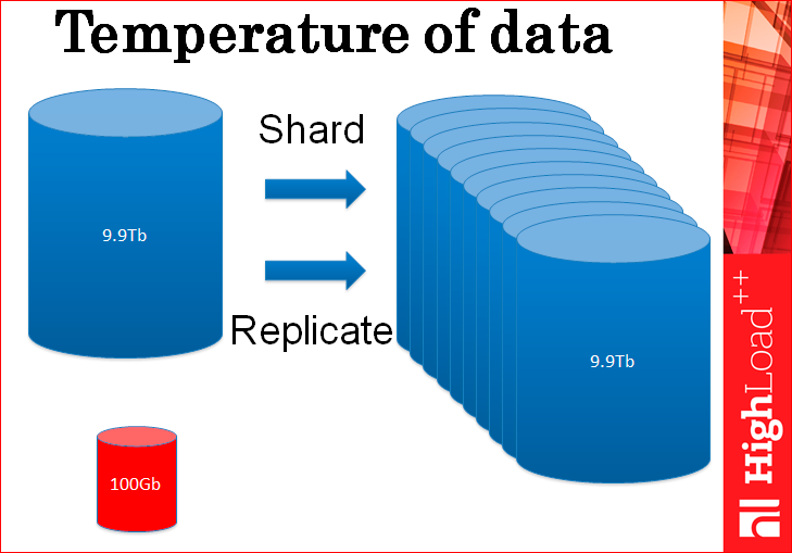 Но и тут та же самая проблема – ведь нагрузка идет именно на горячие данные и поэтому, если вы будете реплицировать и шардировать только их, проблема никуда не исчезнет, вам нужно ровно столько же серверов, чтобы обработать всю эту огромную нагрузку.