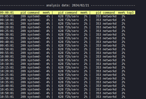 Также при указании названия файла, из которого будет формироваться отчет, можно создавать короткую запись, состоящую только из y, например, 'yyy' – в данном случае будет читаться файл atop 3-дневной давности. Если сегодня 10.02.24, то будет использован файл от 07.02.24. Можно просто указать 'y' и будет использован файл за прошлый день.