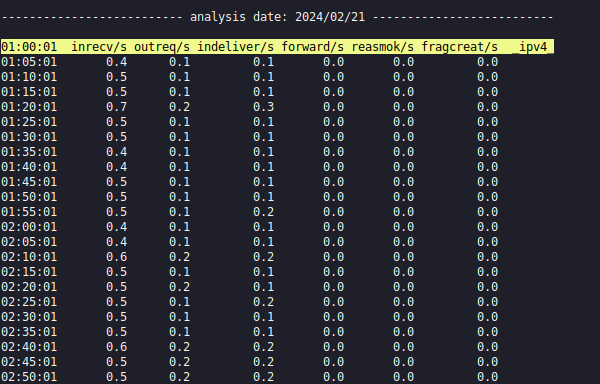 Нагрузка по сетевым интерфейсам:atopsar -r /var/log/atop/atop_20240221 -b 1:00 -e 6:00 -w