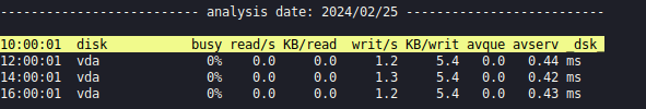 Нагрузка на диски:atopsar -r /var/log/atop/atop_20240221 -b 9:00 -e 15:00