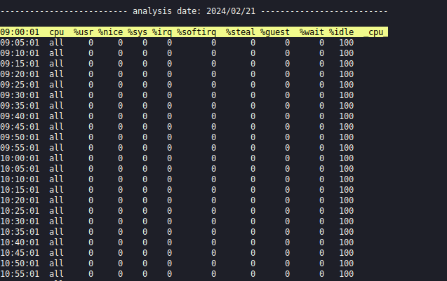 Например, если у вас в системе установлено значение интервала записи на 300 секунд, то флаг '-R 12' позволит увидеть общую информацию за каждый час. Бывает полезно для локализации проблемы, если вам неизвестно точное время проблемы.
