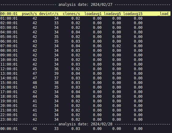 Например, такая команда выведет отчет о средней нагрузке за позавчера :